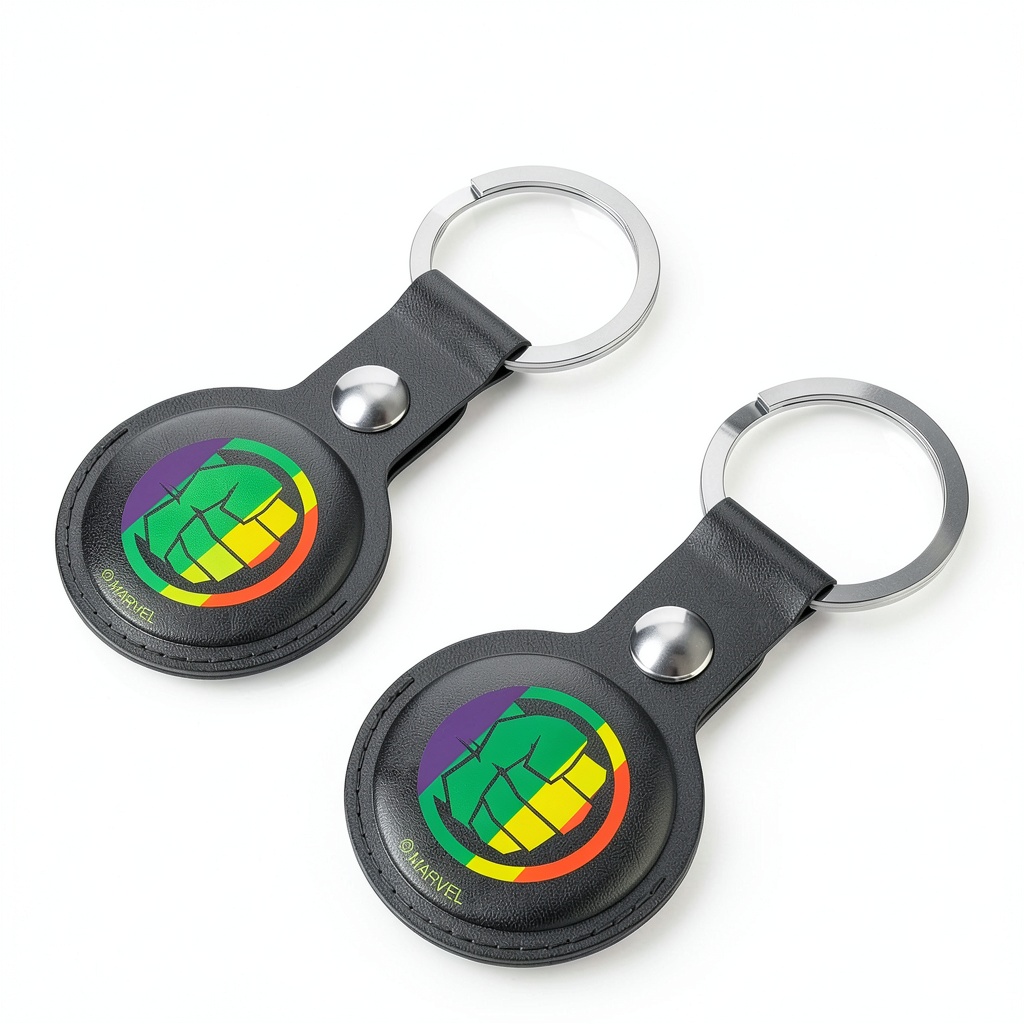 Show your Marvel Avengers fandom with this officially licensed Hulk Sigil AirTag holder. Crafted from durable black leatherette, it shields your AirTag from damage while adding style to keys, bags, or pet collars. The 2-pack lets you secure multiple items and includes a key ring for easy attachment.