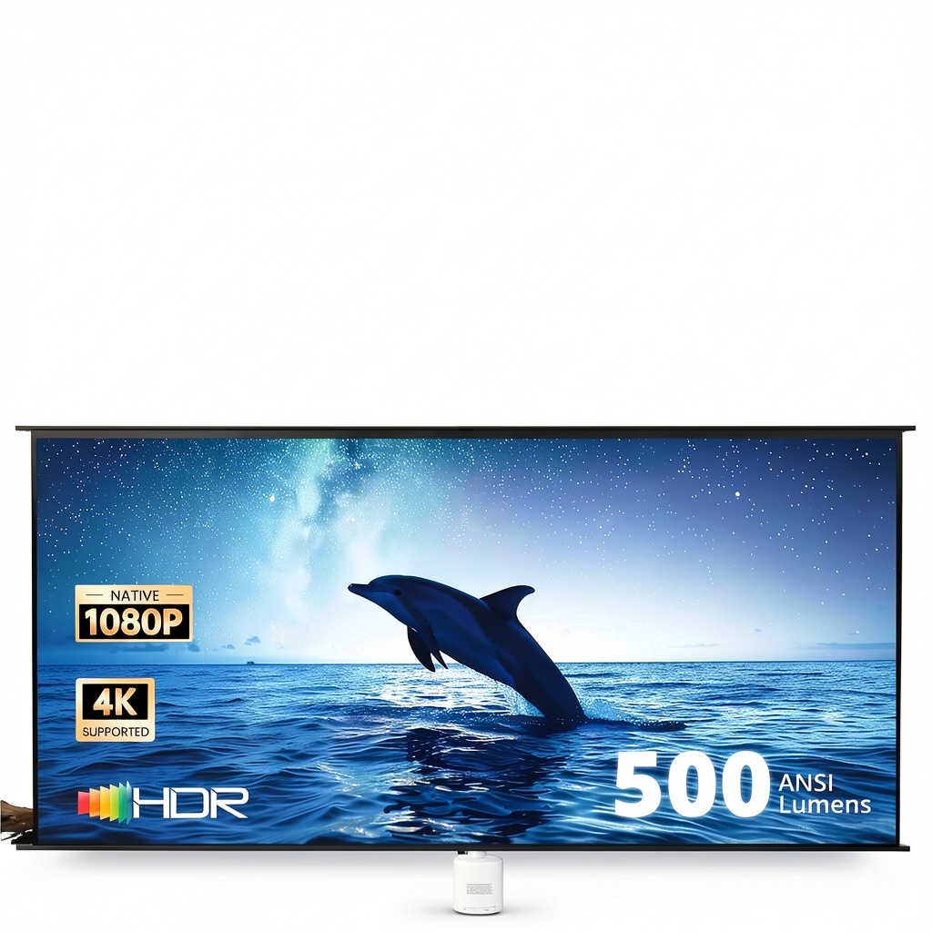 - 1080P FHD resolution with 500 ANSI lumens for bright, clear visuals on screens up to 150 inches