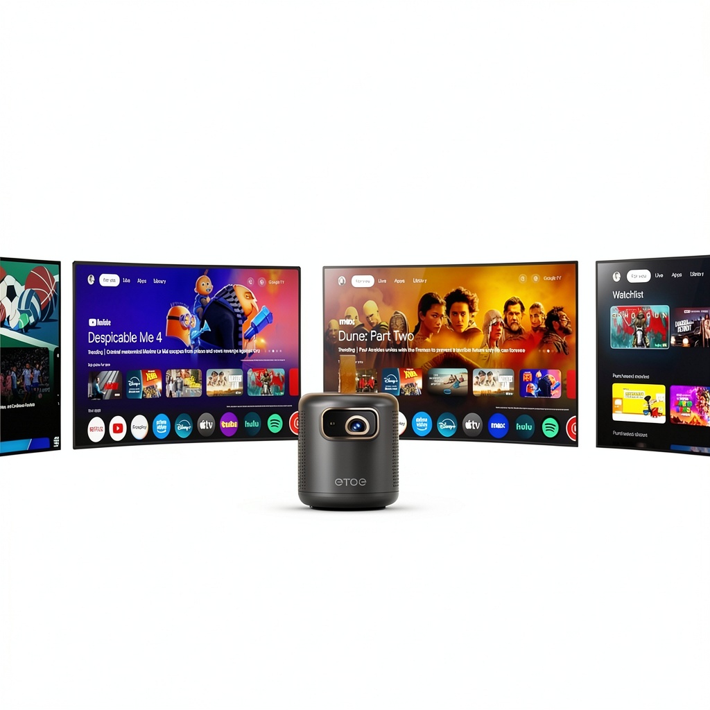 ETOE prioritizes quality and innovation, with the Dolphin projector offering superior portability and smart features at an accessible price. Its TOF laser autofocus and automatic keystone correction provide hassle-free setup, while Dolby Audio certification and Google TV integration deliver a premium entertainment experience. The durable build and included accessories ensure reliability, backed by a focus on user-friendly design for all skill levels.