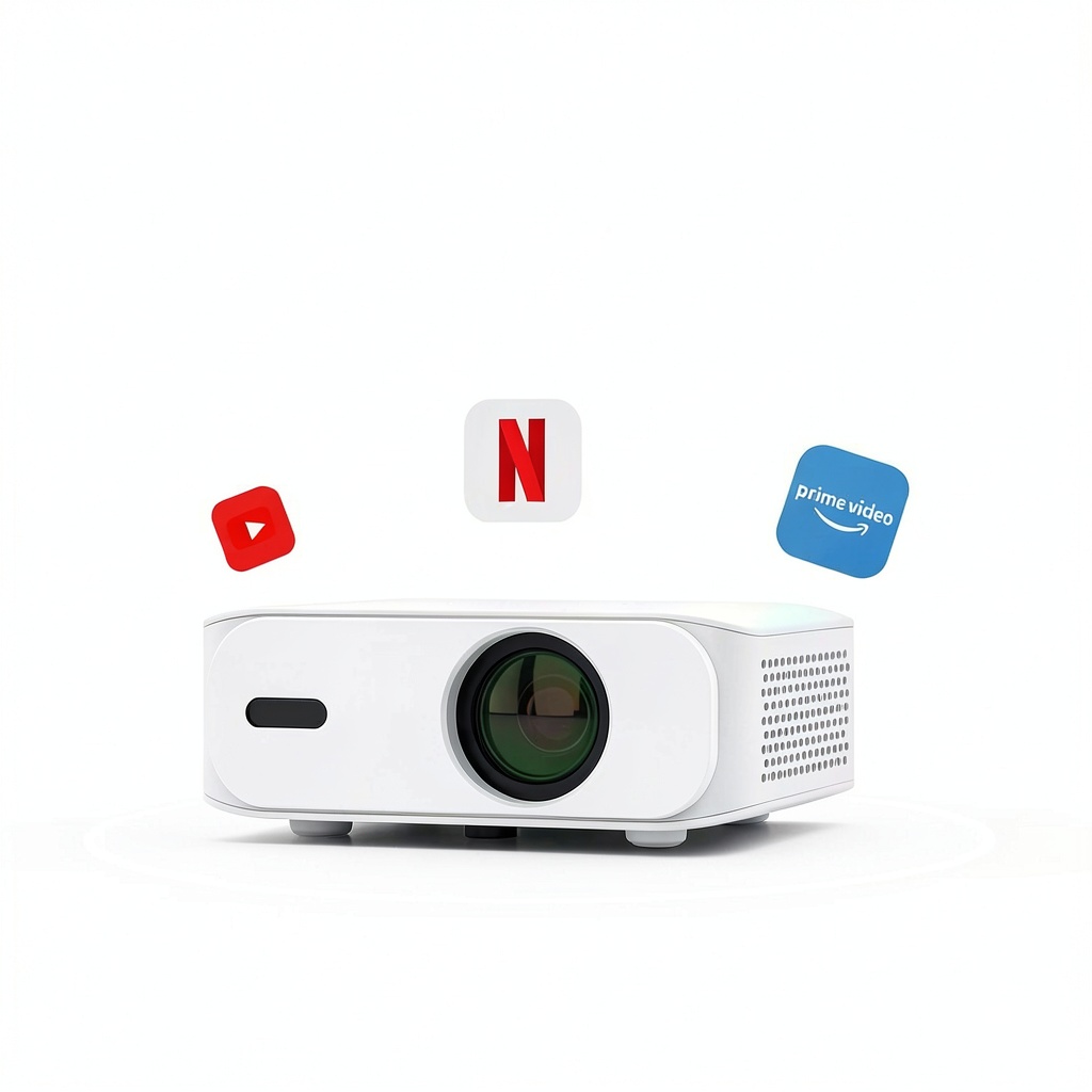 The BOSS S5A Full HD Smart Portable Projector combines high-definition visuals with smart functionality for versatile entertainment and professional use. It features a native 1920×1080 resolution and 4000 lumens brightness, ensuring sharp, bright images even in well-lit environments. Powered by an Android operating system, it allows direct access to streaming apps like Netflix and YouTube without extra devices. Constructed with a durable white housing, this projector supports dual-band Wi-Fi, Bluetooth 5.0, HDMI, and USB inputs, making it easy to connect to laptops, gaming consoles, and mobile devices. Its compact, lightweight design includes mounting options for ceilings, floors, or walls, offering flexibility in any setup.