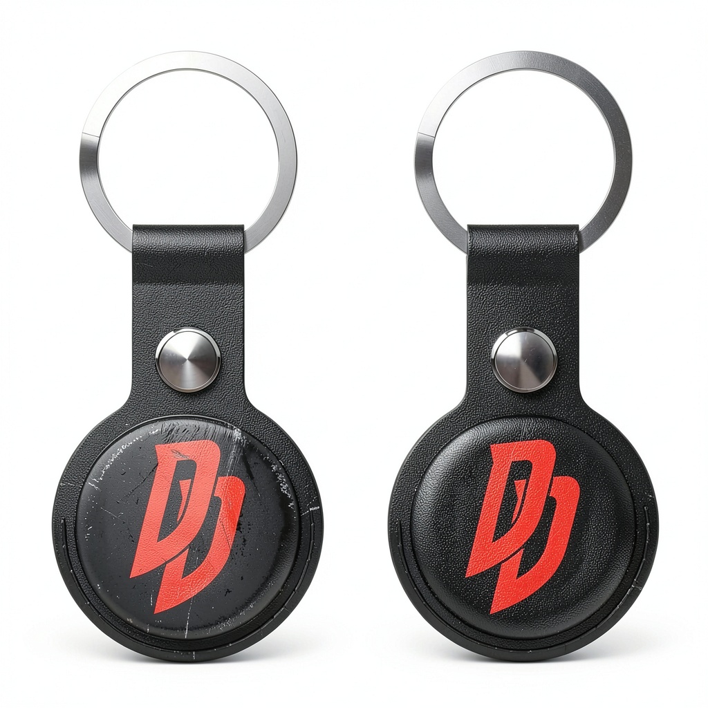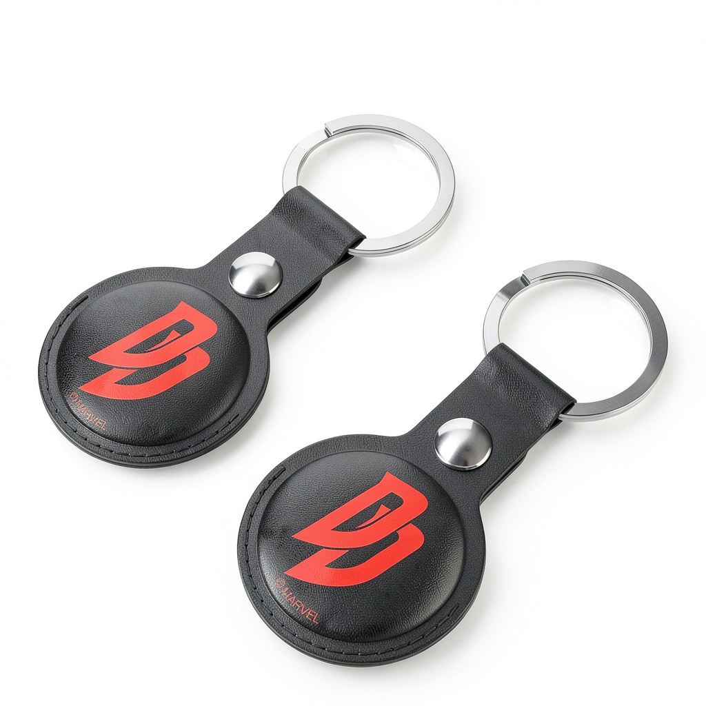 Elevate your everyday essentials with the Keyscaper Marvel Daredevil Badge AirTag Holder 2-Pack in sleek black. This officially licensed accessory is crafted from premium soft leatherette, offering durability and a comfortable grip. Designed to fit Apple AirTags seamlessly, the holder includes a secure key ring for easy attachment. Each 2-pack provides consistent protection and vibrant, full-color Daredevil graphics, making it a standout addition to your collection. Backed by a one-year warranty against manufacturing defects, it combines fan expression with reliable functionality.