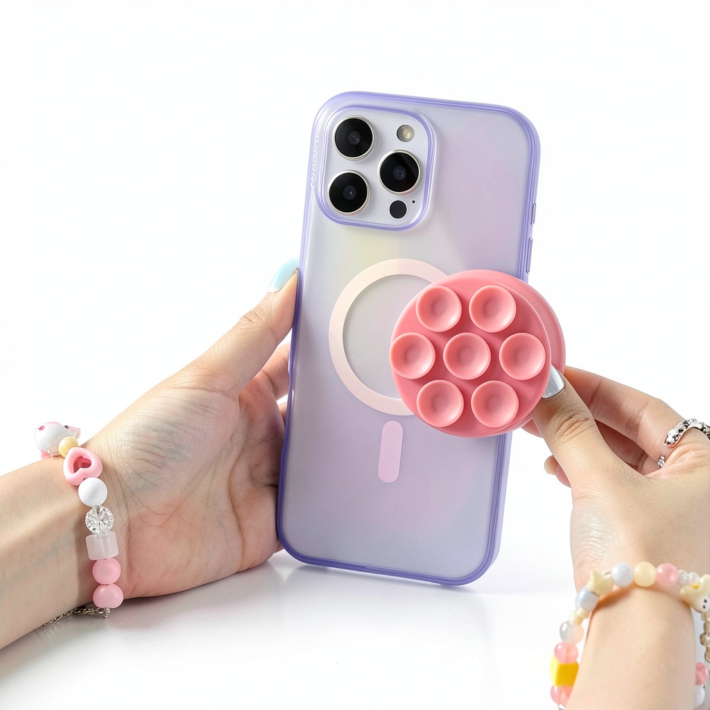 Ideal for daily commuters, content creators, and mobile professionals who need secure phone handling in various environments. Use the suction mount in your car for GPS navigation, on bathroom mirrors for video calls, or on office desks for hands-free viewing. The grip function provides confidence during one-handed texting and photography, while the kickstand enables comfortable media consumption during travel, workouts, or leisure time. Compatible with most smooth-surfaced cases, though not recommended for silicone, textured, or anti-fingerprint coated cases.