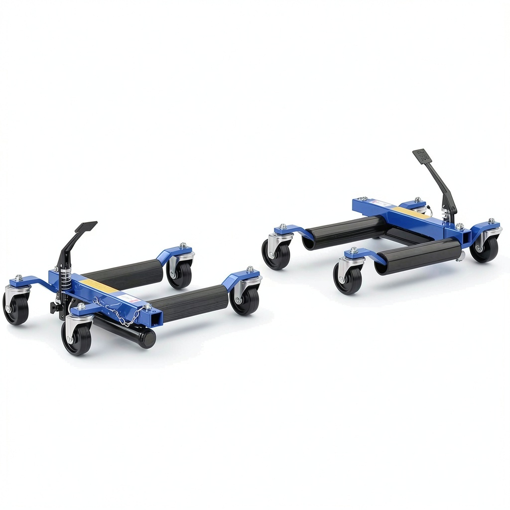 This car wheel dolly is ideal for a variety of realistic scenarios, including auto repair shops, home garages, and roadside assistance. It simplifies tasks such as moving disabled cars, repositioning wheels during tire changes, and transporting light vans for maintenance. Target audiences include professional mechanics, DIY enthusiasts, and vehicle owners seeking efficient solutions for handling heavy loads. Whether in a cluttered workshop or an emergency situation, the dolly’s portability and strength make it suitable for frequent use in both commercial and residential settings.