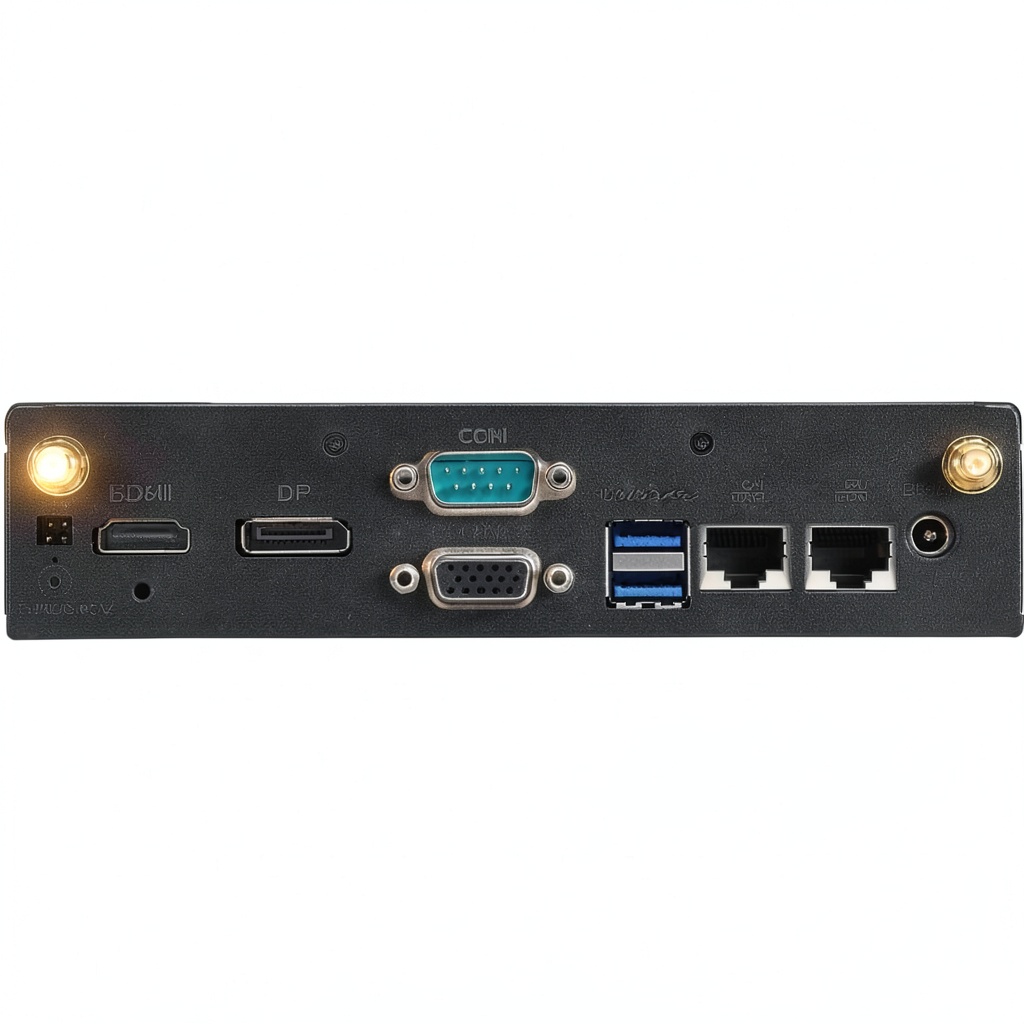 - Fanless design with a sturdy metal chassis for silent and reliable operation in industrial settings.